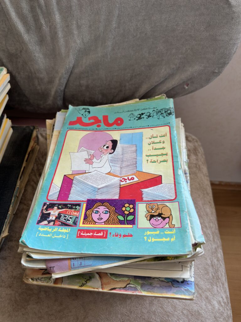 هذا جميل حقًا، أسأل الله أن يعوضك خيرًا عما فقدت. بعض الأشياء تذكرتها من طفولتي مثل المذياع، وجهاز التحكم، وبالطبع مجلات ماجد وميكي.